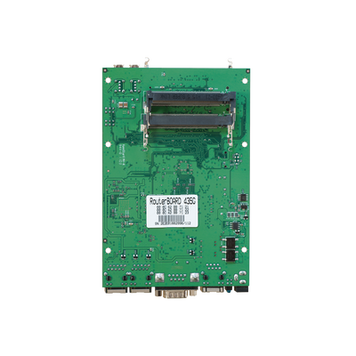 Cinco ranuras miniPCI y tres puertos Gigabit Ethernet le brindan suficientes opciones de conectividad para utilizar el RB435G como la parte central de su red. Ahora con puertos Gigabit, para utilizar correctamente toda la velocidad 802.11n con Nv2 inalámbrico.