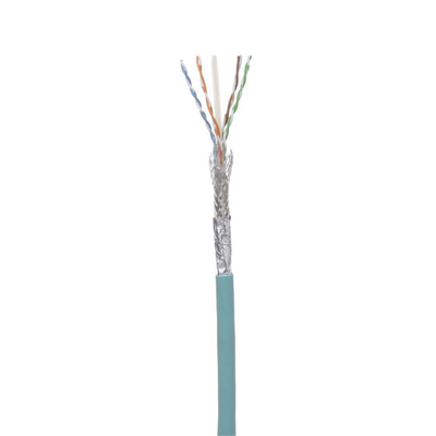 El cable de cobre blindado SF/UTP de Categoría 6A supera las normas IEC 61156-6 y ANSI/TIA-568-C.2 Categoría 6A hasta 80 metros. Los conductores de cobre multifilar son 24/7 AWG con aislamiento de polietileno de alta densidad (HDPE). Los conductores de cobre se trenzarán en cuatro pares. Todos los pares esta rodeado por una lámina metálica total. Los cuatro pares están rodeados por un blindaje trenzado general y cubiertos con un forro de termoplástico (TPE). El forro es resistente al aceite, los rayos UV, las salpicaduras de soldadura y la abrasión para mejorar la resistencia química y el rendimiento mecánico. Es retardante de llama (CMX/CM) para aplicaciones de industriales Ethernet. Este cable admite aplicaciones de alta flexibilidad y estará clasificado para aplicaciones de panel o en la máquina donde el espacio se comparte con cables de alto voltaje de 600V.