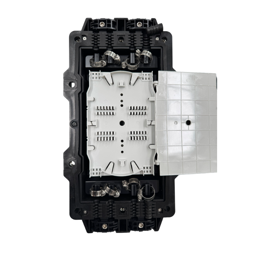 La caja de distribución de fibra óptica horizontal modelo WB-012 Fibralink es la opción perfecta para proteger y organizar hasta 48 empalmes en redes FTTH y sistemas de telecomunicaciones. Diseñada con protección IP68, garantiza una hermeticidad total frente a polvo, agua y condiciones ambientales extremas, asegurando una larga vida útil en instalaciones al aire libre. Su configuración horizontal facilita una distribución ordenada de las conexiones ópticas, optimizando tanto el acceso como el mantenimiento. Ideal para aplicaciones en exteriores que requieren alta confiabilidad y eficiencia en la gestión de cables de fibra.