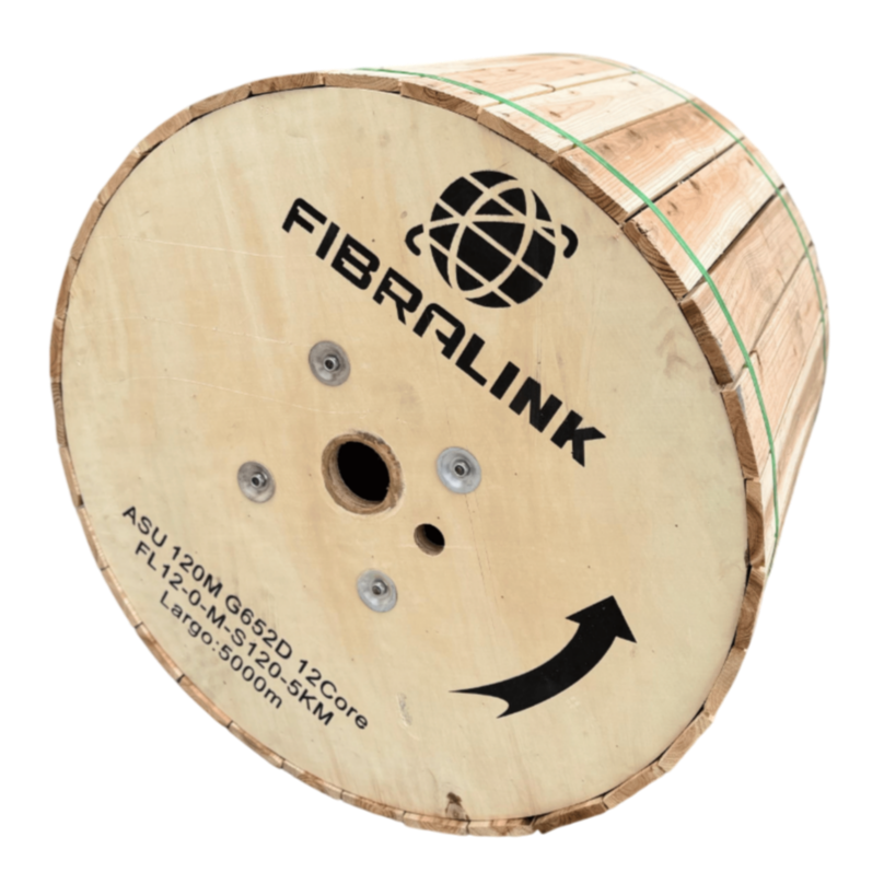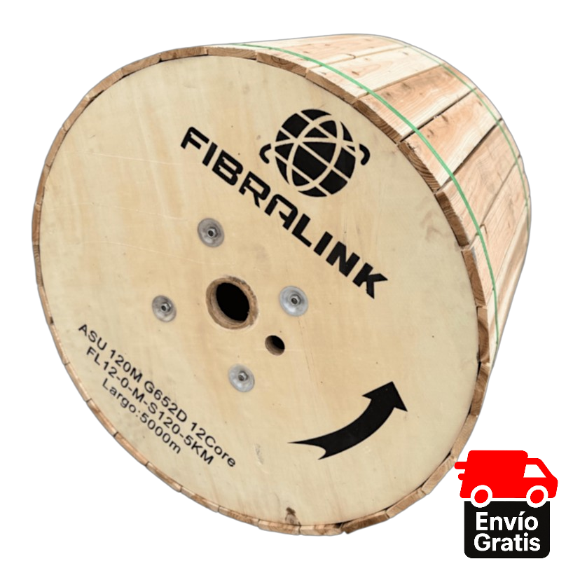 Carrete de 5 km de cable de fibra óptica mini ADSS (ASU) Fibralink monomodo G652D con 12 fibras, diseñado para instalaciones aéreas sin necesidad de soporte metálico. Este cable autoportante es perfecto para proyectos exteriores, ya que soporta condiciones climáticas adversas, garantizando una transmisión confiable y eficiente. Con una capacidad de alcance de hasta 120 metros por tramo, su diseño compacto facilita el tendido en espacios reducidos, mientras que las 12 fibras permiten la conexión simultánea de múltiples dispositivos a largas distancias, ideal para aplicaciones de telecomunicaciones y redes de gran escala.