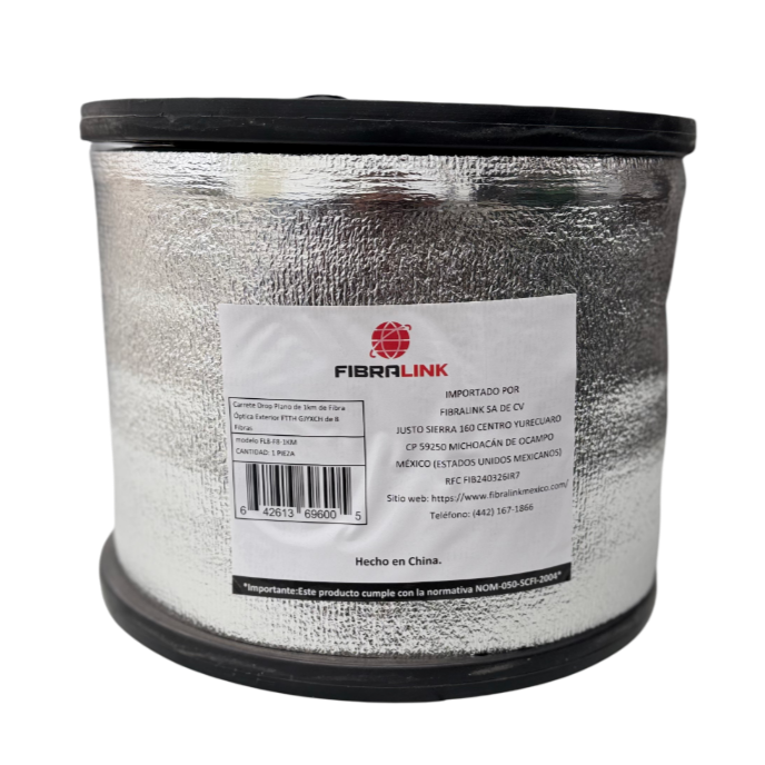 Eleva la conectividad de tus proyectos con el Carrete de Fibra Óptica Drop Plano GJYXCH Fibralink de 1 km, equipado con 8 fibras monomodo G657A1. Perfecto para redes FTTH y telecomunicaciones, este cable garantiza una transmisión de datos de alta capacidad con mínima atenuación. Su diseño plano y ligero facilita instalaciones rápidas en entornos aéreos, subterráneos o interiores, optimizando el despliegue en redes de última milla.