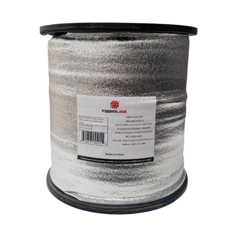 Descubre el Carrete de Fibra Óptica Drop Plano GJYXCH de 2 km Fibralink con 8 fibras monomodo G657A1, diseñado específicamente para redes FTTH y aplicaciones de alta velocidad. Este cable óptico de alta calidad garantiza una transmisión de datos eficiente y confiable, ideal para despliegues en telecomunicaciones, redes PON y conexiones de última milla.