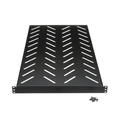 La Charola par Rack es un accesorio diseñado para admitir equipos de red de gran tamaño. Complementa el sistema de Racks de 4 postes en centros de datos y aplicaciones empresariales. La charola está fabricada de acero y es de color negro.