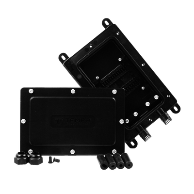 Adminte un total de 12 empalmes por fusión y 2 empalmes mecánicos que se colocan de forma segura dentro del cierre con protección al ingreso IP68. El DFE101 se puede enterrar permanentemente o montarse en el lateral de un edificio.