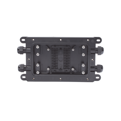 Adminte un total de 12 empalmes por fusión y 2 empalmes mecánicos que se colocan de forma segura dentro del cierre con protección al ingreso IP68. El DFE104 se puede enterrar permanentemente o montarse en el lateral de un edificio.
