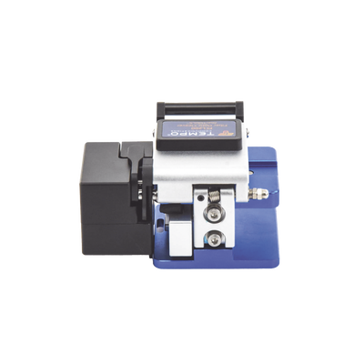 Cuando se instala el soporte fijo, la fibra se mantiene firmemente en su lugar y el Cleaver es capaz de cortar fibras de 200 µm, 250µm, 900µm y fibra de 3 mm. El contenedor de polvo recoge automáticamente todos los cortes finales de fibra para su eliminación segura con su mecanismo accionado por resorte.