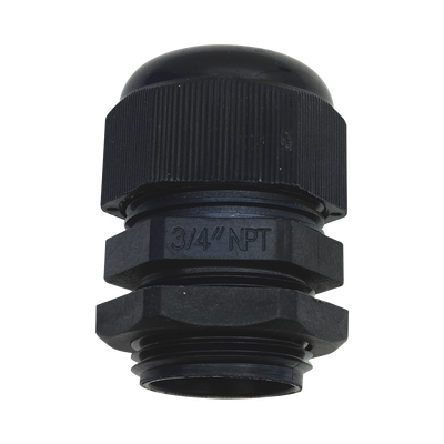 Conector Plástico Negro Tipo Glándula para Rosca NPT 3/4"