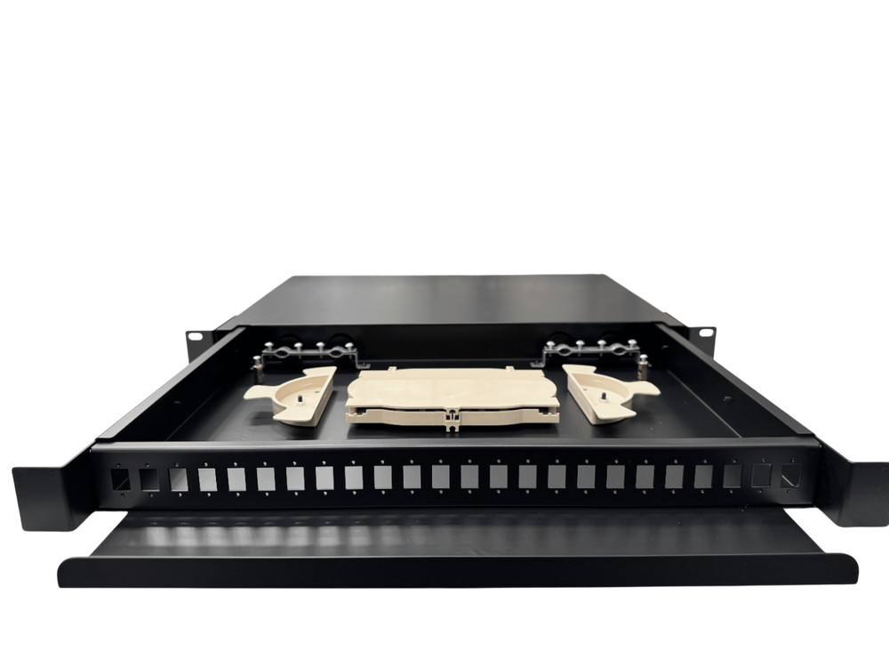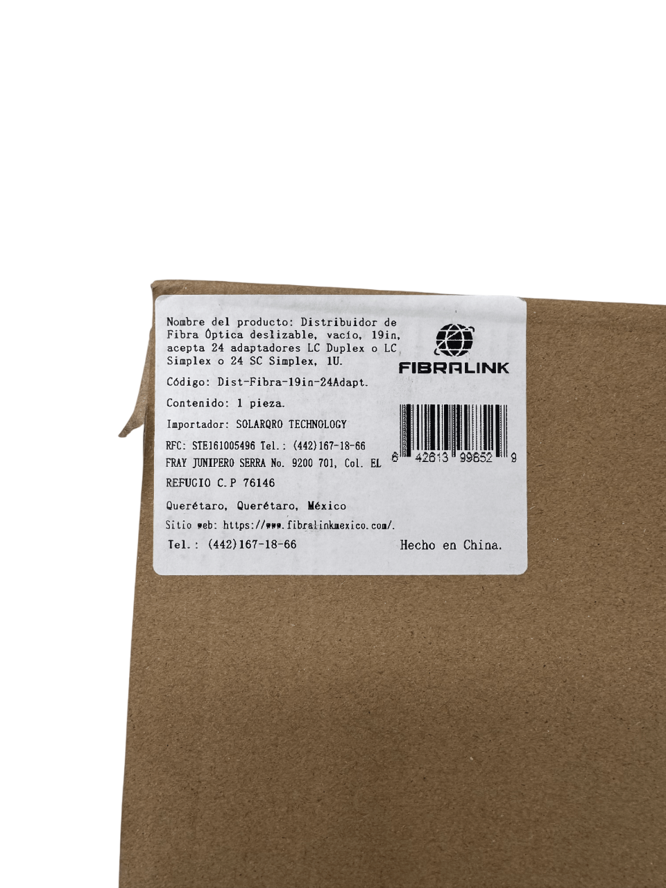 El distribuidor de fibra óptica deslizable de 19 pulgadas, con capacidad para 24 adaptadores LC Duplex, LC Simplex o SC Simplex Fibralink, es ideal para organizar y gestionar conexiones de fibra en sistemas de telecomunicaciones. Su diseño compacto de 1U maximiza el uso del espacio en racks de servidores y armarios de redes. Gracias a su mecanismo deslizable, ofrece un acceso rápido y sencillo a las conexiones, facilitando tareas de mantenimiento y expansión de la infraestructura. Este distribuidor garantiza una instalación ordenada y eficiente, proporcionando flexibilidad y confiabilidad en las redes de alta demanda.