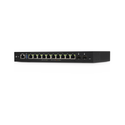 El EdgeRouter ™ 12 / 12P ofrece un valor de precio / rendimiento de próxima generación: hasta 3.4 millones de paquetes por segundo de procesamiento con una tasa de línea de hasta 6.8 Gbps. Los diez puertos Gigabit Ethernet ofrecen conectividad de cobre, mientras que dos puertos SFP ofrecen conectividad de fibra. El EdgeRouter 12P admite PoE de 24 V.