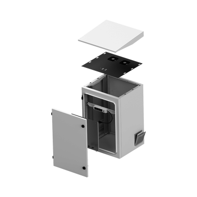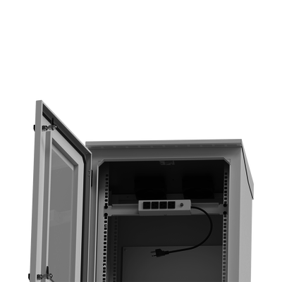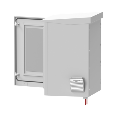 Gabinete para Exterior con Ventiladores y Termostato con Rack de 19' de 24 Unidades con capacidad de ser instalado en torre, poste, pared o piso (Herraje se vende por separado).