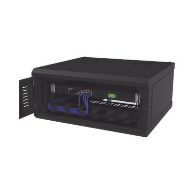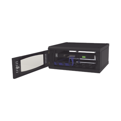 Gabinete de Montaje en Pared, Con Puerta de Cristal, Cuerpo Fijo con Rack, de 19in, 4UR, Color Negro