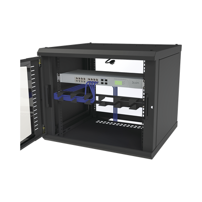 Gabinete para Montaje en Pared Fijo, con 9 Unidades de Rack, de 19in, Puerta de Cristal Templado, Fabricado en Acero