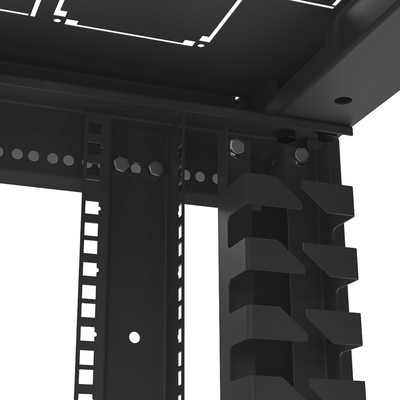 • Posibilidad de añadir 2 organizadores verticales adicionales a los incluidos, tomando en cuenta la profundidad de los equipos a instalar.