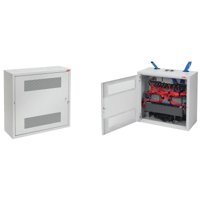 Ideal para aplicaciones comerciales donde es necesario alojar equipos de red de 19 pulgadas en ubicaciones públicas. Diseñado en conformidad con BICSI TDMM Décima edición, Capítulo 7, Telecomunicaciones.