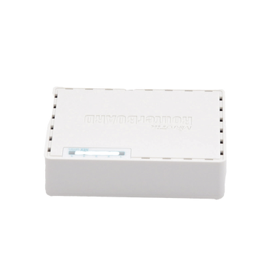 hEX PoE Lite es un pequeño router de Ethernet de cinco puertos en una caja de plástico, que tiene un puerto USB 2.0 y salida PoE.