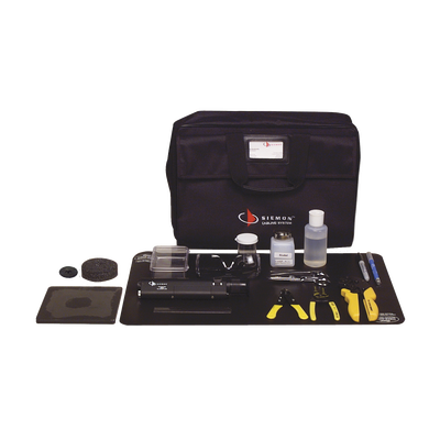 El Kit de terminación de fibra óptica de Siemon contiene todas las herramientas necesarias para la terminación de conectores ST o SC en fibra Monomodo o Multimodo. El Kit incluye sistema consumible de adhesivos, que cuenta con un tiempo de curado de 20 segundos. Adhesivo teñido en verde para una indicación visual sencilla durante el proceso de terminación.