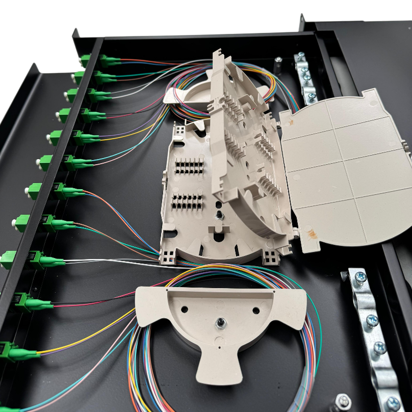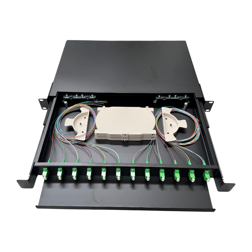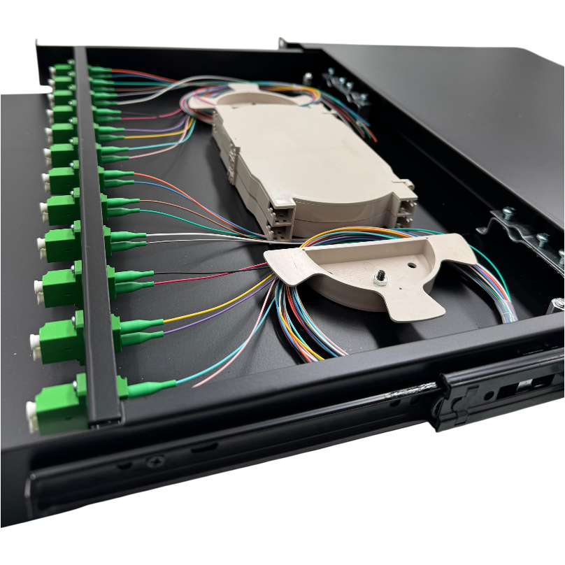 El ODF deslizable 1U Fibralink optimiza redes de fibra óptica con 12 adaptadores LC y 24 pigtails de fibra monomodo G657A1 (0.9 mm, 1 m). Su diseño compacto y deslizable agiliza la instalación y mantenimiento en telecomunicaciones y centros de datos. Soporta 24 conexiones con alto rendimiento y durabilidad.