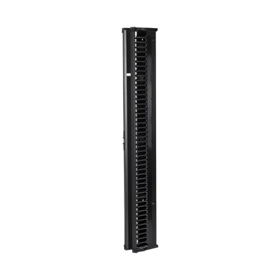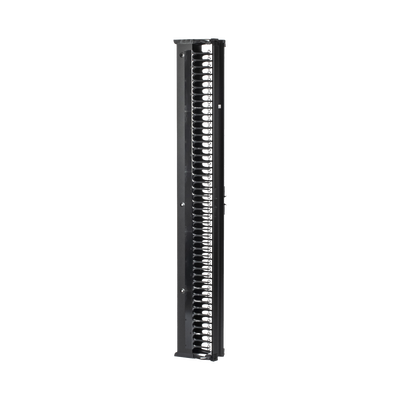 Disponibles en modelos de una y dos caras, este administrador de cables vertical se monta en los lados de o entre racks de marco abierto de 2 y 4 postes. La parte frontal del administrador brinda soporte, administración y alta capacidad para patch cords, mientras que la parte posterior admite cables Cat 5e, 6, 6A y fibra óptica.
