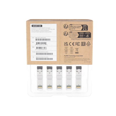 La familia MGB del módulo SFP Gigabit Ethernet se puede instalar en el Switch PLANET y Convertidores de Medios con interfaz 1000BASE-SX / LX / BX SFP. La distancia de alcanze se puede extender desde 550m (Multi-Mode, LC) hasta 120 kilómetros (monomodo, LC) dependiendo del tranceptor.