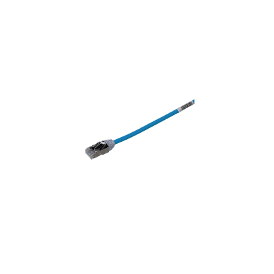 El Patch Cord blindado TX6A-28™ Cat 6A está fabricado con forro CM/LSZH blindado, de par trenzado, sólido, de 28 AWG con plugs modulares de rendimiento mejorado. El uso de un cable de 28 AWG asegura que la conexión tenga un diámetro pequeño, lo que facilita su instalación y trabajo. El pestillo patentado sin enredos evita enganches y proporciona una liberación fácil, lo que ahorra tiempo en movimientos, adiciones y cambios frecuentes. El cable de conexión tiene 1,5 metros de longitud, 0,185 pulgadas (4.7 mm) de diámetro nominal y es azul.