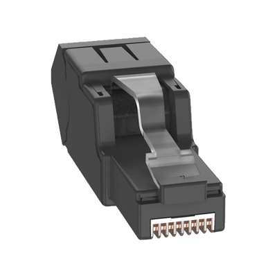 Plug RJ45 UTP, Instalación Angulada 45 Grados, Terminación en Campo Certificable, Compatible con Cat5e, Cat6 y Cat6A, Color Negro