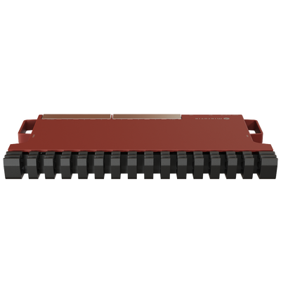 El nuevo recinto es una innovación espectacular por sí solo. Es el mismo factor de forma que podrías haber visto con nuestros codiciados dispositivos RB5009. Tiene varias propiedades extremadamente útiles. En primer lugar, el estuche actúa como un enorme disipador de calor, protegiendo sus configuraciones del sobrecalentamiento. Pero aquí está la parte divertida: viene con todo lo que necesitas para colocar hasta cuatro de estos routers en un solo espacio de montaje en rack de 1U.