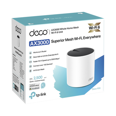 Router Inalámbrico MESH Interior para Hogar / Doble Banda Wi-Fi 6 AX3000 Mbps / 3 Puerto Gigabit WAN/LAN / 2 Antenas Internas / Administración Mediante la App Deco (iOS, Android) / Protección HomeShield