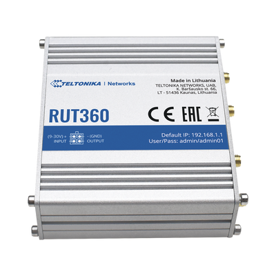 RUT360 es una versión actualizada de nuestro best-seller de todos los tiempos RUT240. Este router celular industrial compacto ofrece la posibilidad de conectarse a Internet utilizando redes celulares, Wi-Fi y cableadas. RUT360 está equipado con dos interfaces Ethernet, WiFi 2.4 GHz 802.11b/g/n y módulo celular 4G LTE Cat 6, que ofrece velocidades de datos de hasta 300 Mbps.