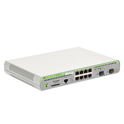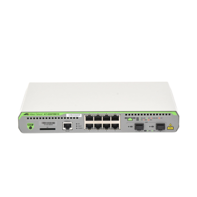 Switch Administrable CentreCOM GS970M, Capa 3 de 8 Puertos 10/100/1000 Mbps + 2 puertos SFP Gigabit