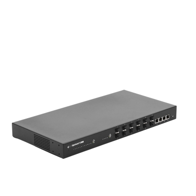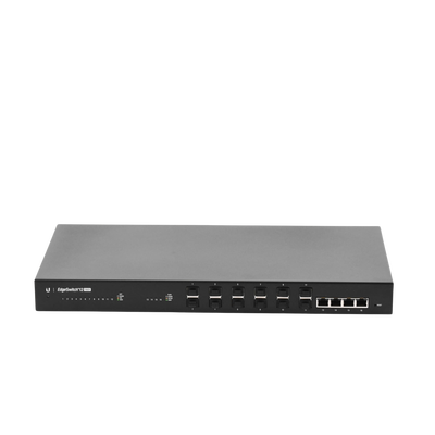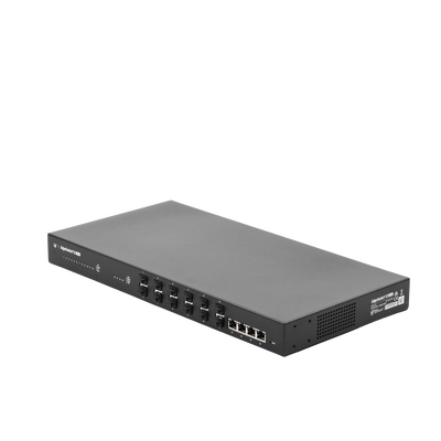 EdgeSwitch® cuenta con 12 puertos SFP y adicional tambien cuenta con 4 puertos para conectividad de cobre en RJ45.