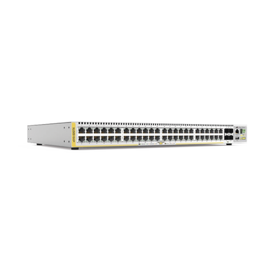 El switch de borde Gigabit apilable x510-52GTX de Allied Telesis cuenta con 48 puertos 10/100/1000T y 4 puertos de enlace ascendente 10G/1G SFP+ con dos fuentes de alimentación de CA de carga compartida interna para una alta confiabilidad.