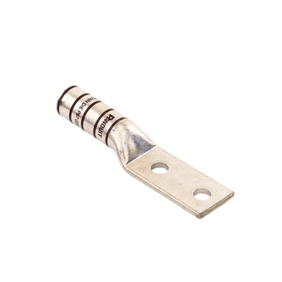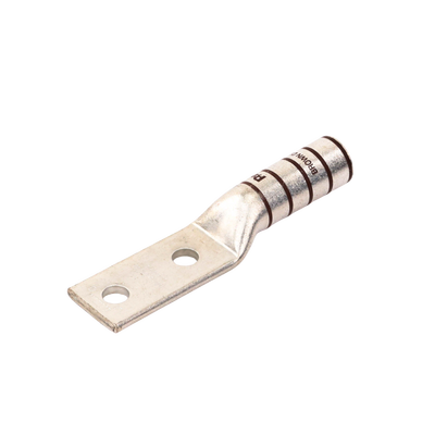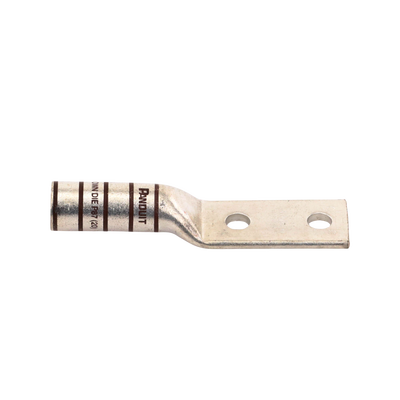 Talón de conector de compresión de cobre estañado LCC500-12-6, dos orificios, tambor largo y tambores codificados por color marcados con números de índice de dado de Panduit y de un competidor especificado para la adecuada selección de dados. El tambor largo maximiza la cantidad de prensas y ofrece alta calidad de rendimiento y resistencia de extracción del cable. El tambor cerrado evita que ingrese material corrosivo en entornos hostiles. Incluido en el Listado UL y certificado por CSA.