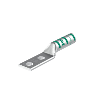 Terminal de Compresión de Barril Largo, de Dos Orificios de 1/4, para Cable 2 AWG, Espacios Entre Orificios de 0.63in