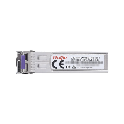 El 2.5G-SFP-LX03-SM1550-BIDI-I está alineado con las especificaciones ópticas IEEE 2.5GBASE-LX y admite una longitud de enlace de hasta 3 kilómetros a través de un SMF con un conector BIDI LC. Adopta el factor de forma SFP y opera a una longitud de onda de 1550 nm. El transceptor cumple con los estándares SFF-8431, SFF-8472 y RoHS.