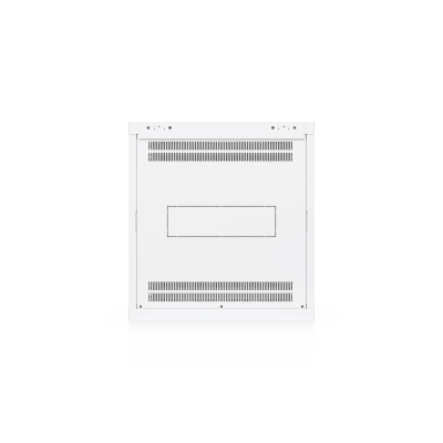 Gabinete para rack 12U de 4 postes para montaje en pared, tipo gabinete cerrado, con puerta frontal perforada y paneles laterales removibles y con llave.